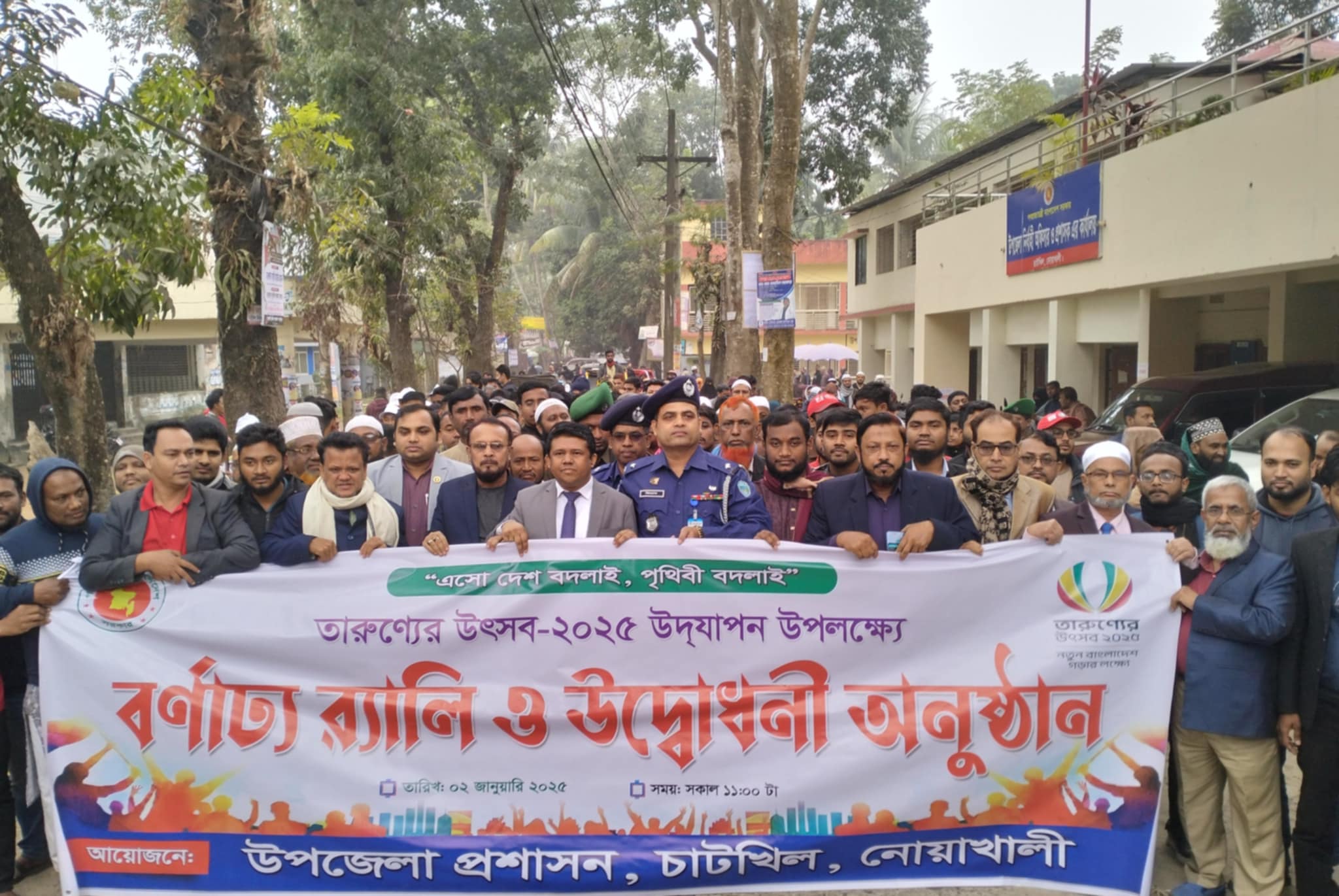 সাইফুল ইসলাম রিয়াদ:'এসো দেশ বদলাই, পৃথিবী বদলাই' এই স্লোগানে নোয়াখালীর চাটখিলে তারুণ্যের উৎসব ২০২৫ উপলক্ষে বর্ণাঢ্য র্যালী অনুষ্ঠিত হয়েছে। বৃহস্পতিবার (২ জানুয়ারি) নির্বাহী অফিসার মিজানুর রহমান উপজেলা পরিষদ চত্বর থেকে বের হওয়া র্যালীটির নেতৃত্ব দেন।   র্যালীটি পৌর বাজারের প্রধান প্রধান সড়ক প্রদক্ষিণ করে শেষ করা হয়।