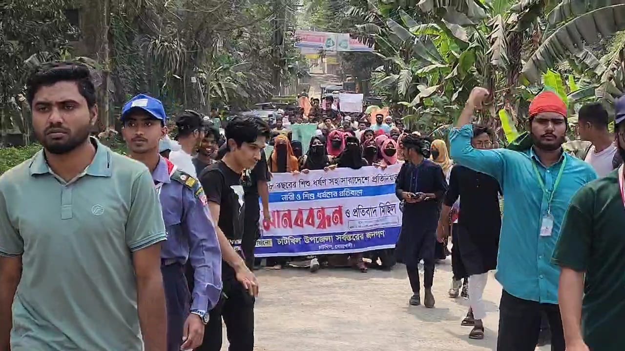 নোয়াখালীর বার্তা ডটকম: মাগুরায় আট বছরের শিশুসহ সারাদেশে ধর্ষণ ও নারী নির্যাতনের বিরুদ্ধে সারা দেশের মতো নোয়াখালীর চাটখিলে বিশাল মানববন্ধন ও প্রতিবাদ মিছিল করা হয়েছে।