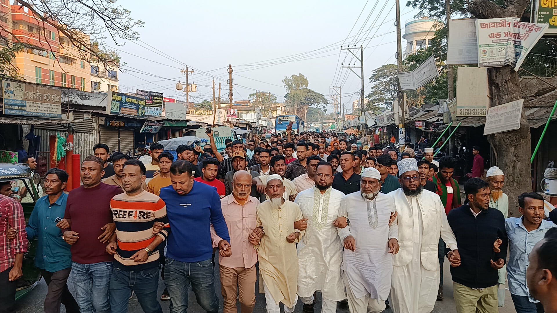 প্রতিবাদ সমাবেশে আরও বক্তব্য রাখেন— সাবেক ছাত্রনেতা আনোয়ার হোসেন কচি, পৌর বিএনপি নেতা খোকন হাজি, উপজেলা যুবদল নেতা মাসুদ আলম,