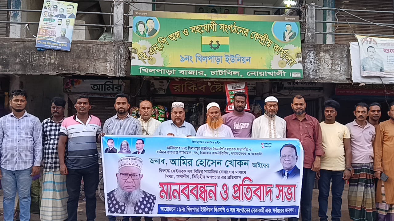 চাটখিলে বিএনপি নেতা খোকনের বিরুদ্ধে অপপ্রচারের প্রতিবাদে মানববন্ধন