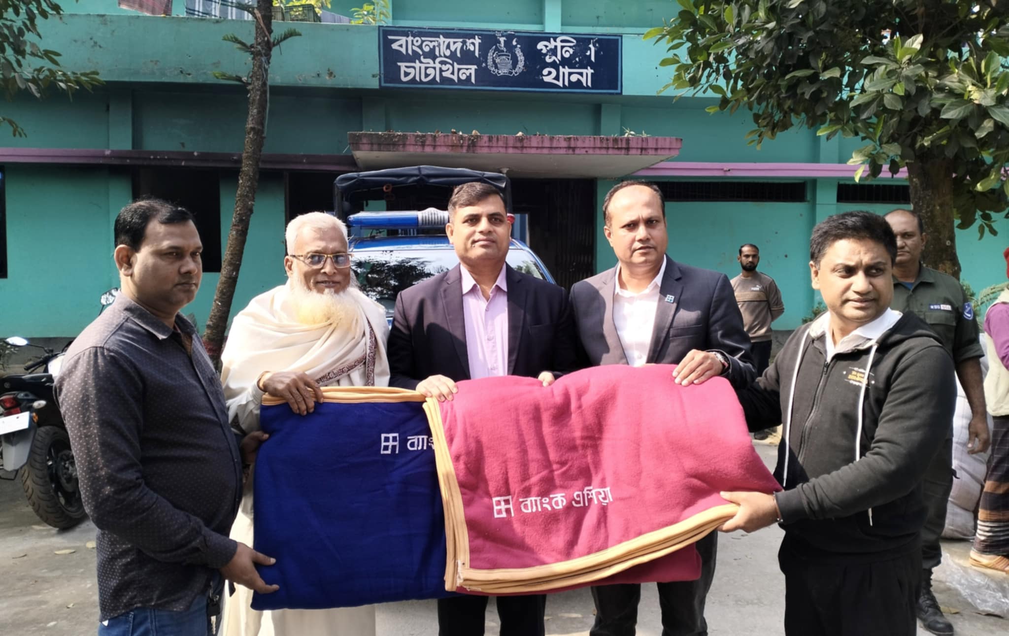 বৃহস্পতিবার ৯ জানুয়ারী সকাল ১০ টায় চাটখিল থানা ভারপ্রাপ্ত কর্মকর্তা মো: ফিরোজ উদ্দিন চৌধুরীর হাতে পুলিশ সদস্যদের জন্য কম্বল তুলে দেন ব্যাংক এশিয়ার সিনিয়র ভাইস প্রেসিডেন্ট ও নোয়াখালী সদর শাখা ব্যবস্থাপক মোহাম্মদ মিজানুর রহমান এবং ভাইস প্রেসিডেন্ট ও চাটখিল শাখা ব্যবস্থাপক বিনয় ভুশন দাস। এসময় আরো উপস্থিত ছিলেন চাটখিল উপজেলা বিএনপি’র সদস্য সচিব শাহজাহান রানা।