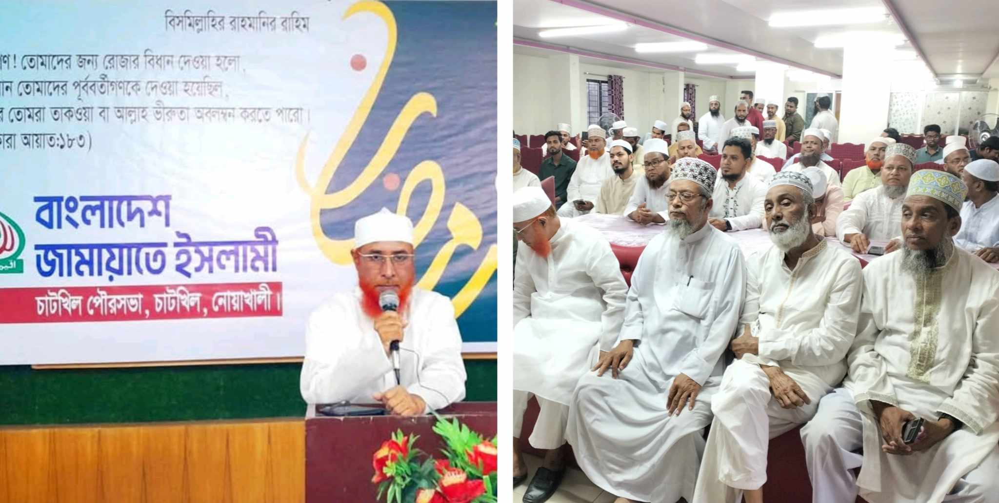 বাংলাদেশ জামায়াতে ইসলমী চাটখিল পৌরসভার সেক্রেটারি মাস্টার শাফায়াত হোসেনের সঞ্চালনায় পৌরসভা আমীর মাওলানা আক্তার হোসেনের সভাপতিত্বে অনুষ্ঠানে আরো উপস্থিত ছিলেন জামায়াতের নোয়াখালী জেলা শুরা ও কর্মপরিষদ সদস্য অধ্যক্ষ মাওলানা ছাইফ উল্যাহ, বিএমএর নোয়াখালী জেলার সাবেক সভাপতি ডা. এমএ নোমান, উপজেলা জামায়াতের নায়েবে আমীর মাওলানা ওমর ফারুক, পৌরসভা জামায়াতের নায়েবে আমীর মাওলানা রাকিব উদ্দিন, ইসলামী আন্দোলন বাংলাদেশের চাটখিল উপজেলা সহসভাপতি মাওলানা সামছুল আলম প্রমুখ।