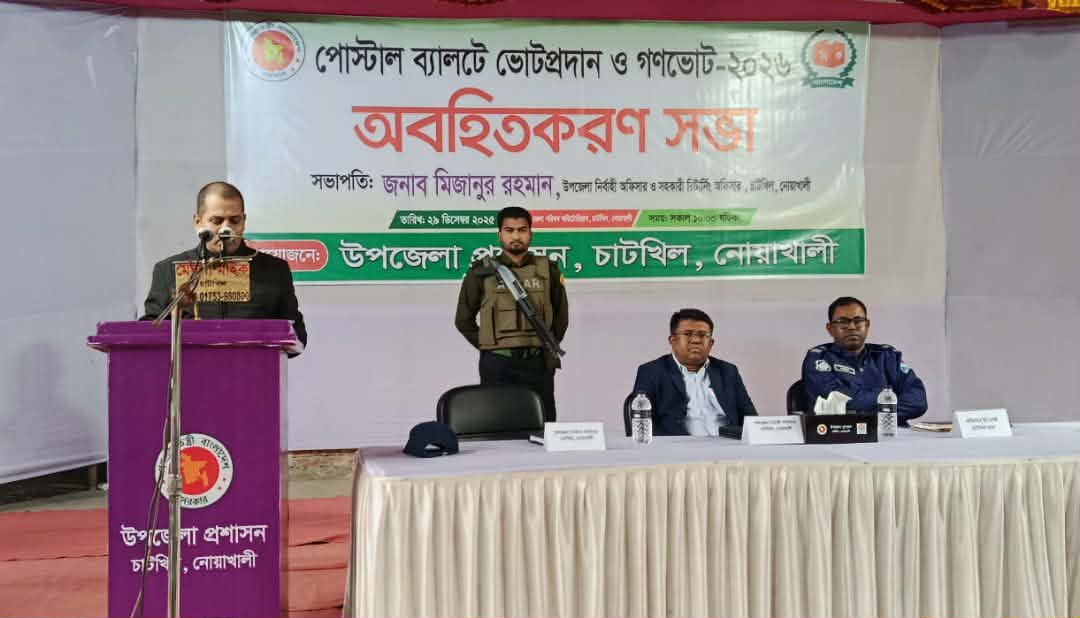 সাইফুল ইসলাম রিয়াদ: পোস্টাল ব্যালটে ভোটপ্রদান ও গণভোট–২০২৬ উপলক্ষে নোয়াখালীর চাটখিল উপজেলায় একটি অবহিতকরণ সভা অনুষ্ঠিত হয়েছে। উপজেলা প্রশাসনের উদ্যোগে আয়োজিত এ সভা চাটখিল উপজেলা পরিষদ মিলনায়তনে অনুষ্ঠিত হয়।